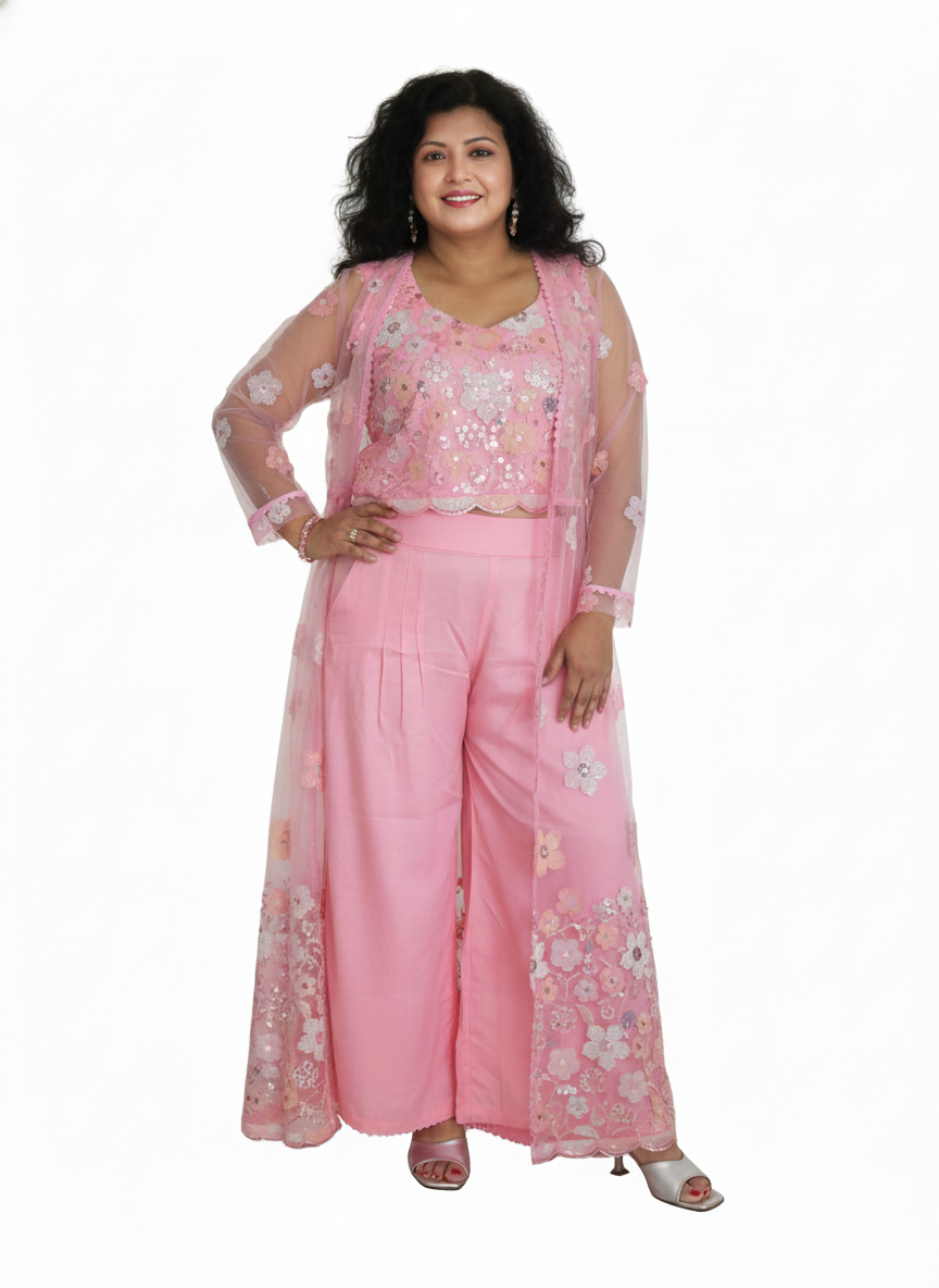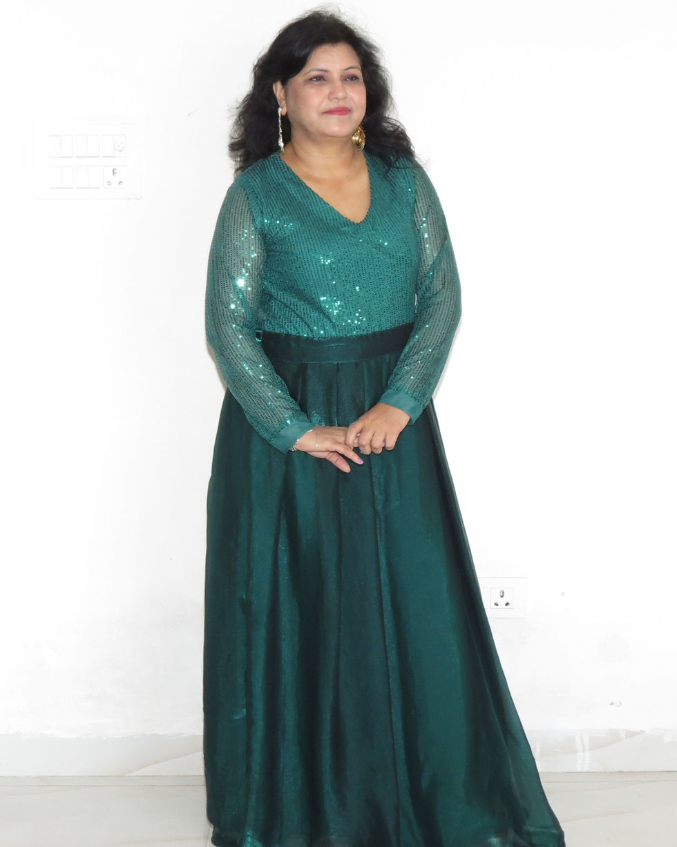 Georgette Polka Dots & Floral Printed Sky Blue & White Dress